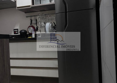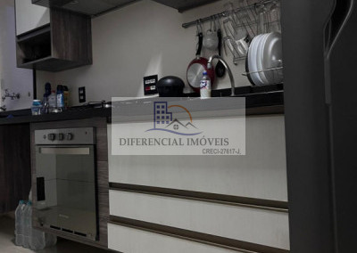 Cozinha: completa, com armários planejados, prática e funcional.